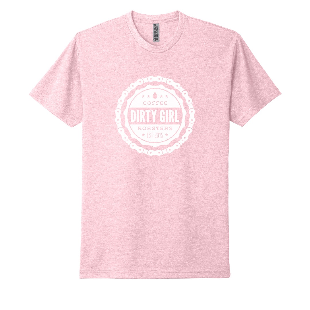 Tri-Blend T-Shirt. Unisex sizing. A soft and comfortable way to show your Dirty Girl Coffee pride. New Get Dirty, Live Dirty, Be Dirty topo design on back.